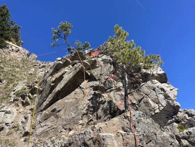 Geländeaufnahmen mittels Drohnenflug zum Erstellen eines 3D-Geländemodells. Absteckung der Ankerpunkte für die temporäre Felssicherung für den Felsabtrag.